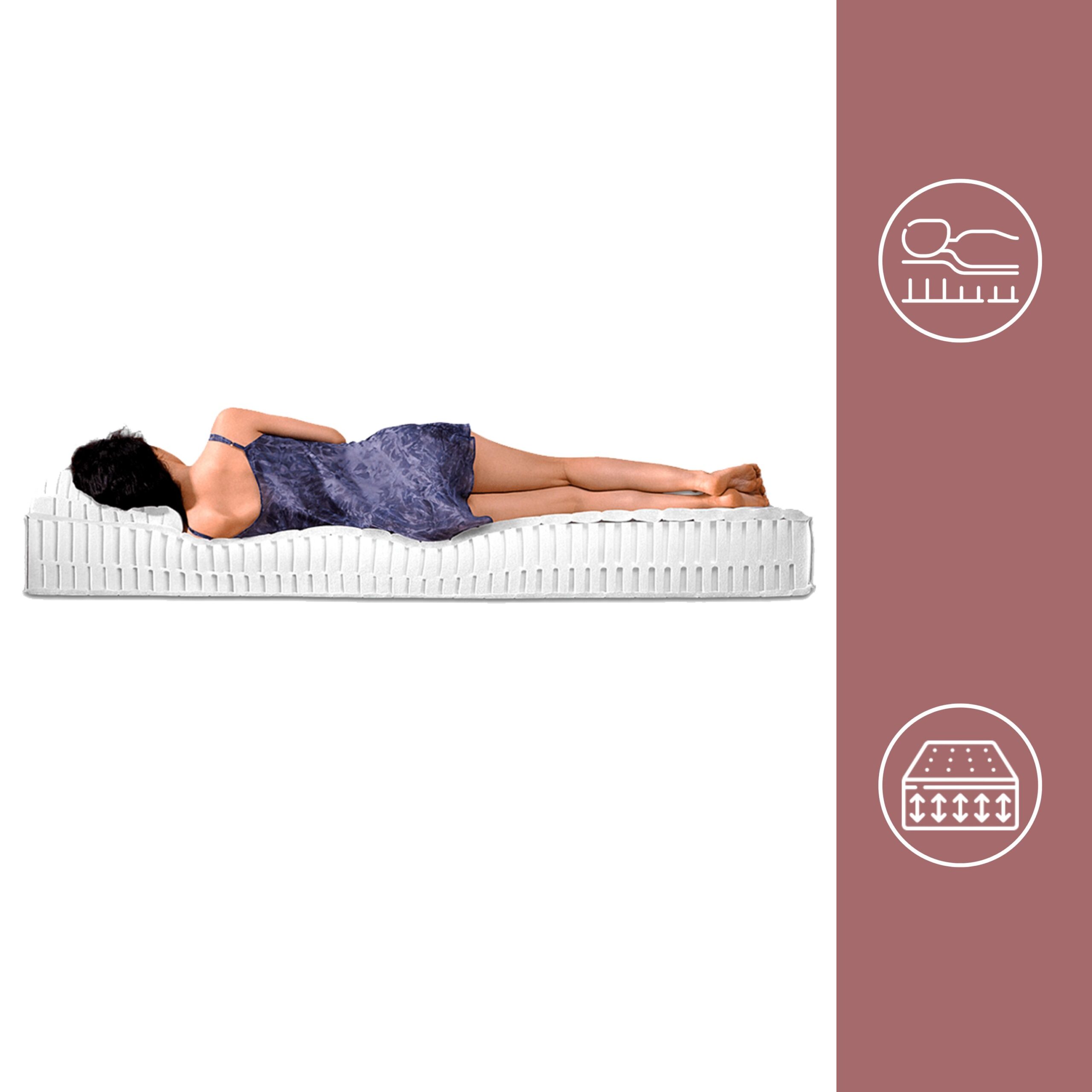 Saltea Latex Standard dispune de șapte zone cu duritate diferită, fiecare proiectată să susțină corect capul, umerii, talia, bazinul, coapsele, genunchii și gleznele. Designul ortopedic ajută la menținerea unei posturi corecte și la reducerea punctelor de presiune. Latexul natural are proprietăți antialergice și antiacariene, fiind biodegradabil și sigur pentru sănătate. Certificarea Oeko-Tex® Standard 100, Clasa I, confirmă lipsa substanțelor nocive și siguranța chiar și pentru copii.